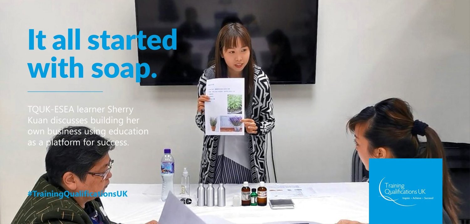 Career milestones don’t come much bigger than setting up your own company. That’s exactly what TQUK-ESEA learner Sherry Kuan did when she launched her handmade soap company – and it’s been quite the journey.
